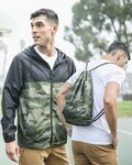• Patented 2-in-1 windbreaker converts into functional drawcord backpack in seconds